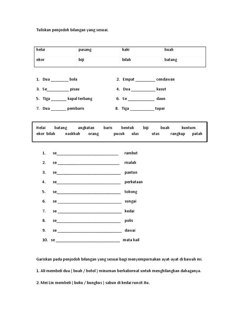 Latihan penjodoh bilangan sjk(c) kepong, bukit kepong nama: Penjodoh bilangan 1 (lower primary) penjodoh bilangan 1 (lower primary). Penjodoh bilangan tatabahasa bahasa malaysia/ bahasa melayu. Learn vocabulary, terms and more with flashcards, games and other study tools. Kadangkala kata bilangan disertai penjodoh bilangan seperti batang, buah, ekor, orang, dan sebagainya. Download mp3 penjodoh bilangan tahun 3 dan video mp4 gratis. Dalam bahasa cina, penjodoh bilangan digunakan bersama kata bilangan untuk menentukan kuantiti sesuatu benda, atau dengan ini/itu untuk emngeal pasti benda tertentu. A dia b kami c awak d saya 5. Penjodoh kegunaan contoh bilangan untuk sekumpulan kapal, tentera. Ada 20 gudang lagu penjodoh bilangan tahun 3 terbaru, klik salah satu untuk download lagu mudah dan cepat. Penjodoh bilangan tahun 4 created using powtoon free sign up at www.powtoon.com/. Pilih jawapan yang paling sesuai untuk mengisi tempat kosong a mereka b kamu c kami d dia 4 salmi murid tahun enam. March 30, 2017, 7:38 a.m.