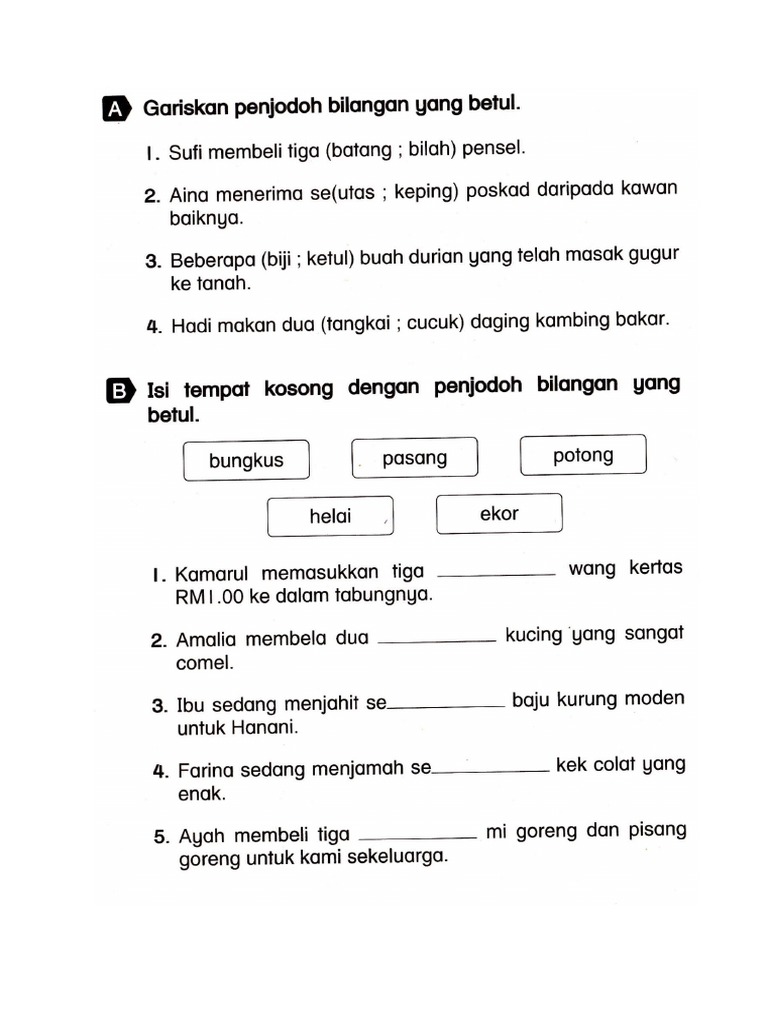 Penjodoh Bilangan Tahun 4 5 Dan 6 Latihan Cute766 from i0.wp.com Pilih jawapan yang paling sesuai untuk mengisi tempat kosong a mereka b kamu c kami d dia 4 salmi murid tahun enam. Learn vocabulary, terms and more with flashcards, games and other study tools. Penjodoh kegunaan contoh bilangan untuk sekumpulan kapal, tentera. Ada 20 gudang lagu penjodoh bilangan tahun 3 terbaru, klik salah satu untuk download lagu mudah dan cepat. Saya, nur hannani binti mohd zainal, pelajar semester 6 pengkhususan bahasa melayu. Penjodoh bilangan 1 (lower primary) penjodoh bilangan 1 (lower primary). Dalam bahasa cina, kata bilangan itu sendiri tidak boleh menentukan kuantiti kata nama itu; Download lagu penjodoh bilangan tahun 4 12.29mb dan streaming kumpulan lagu penjodoh bilangan tahun 4 12.29mb mp3 terbaru di metrolagu dan hasil diatas adalah hasil pencarian dari anda penjodoh bilangan tahun 4 mp3 dan menurut kami yang paling cocok adalah penjodoh.