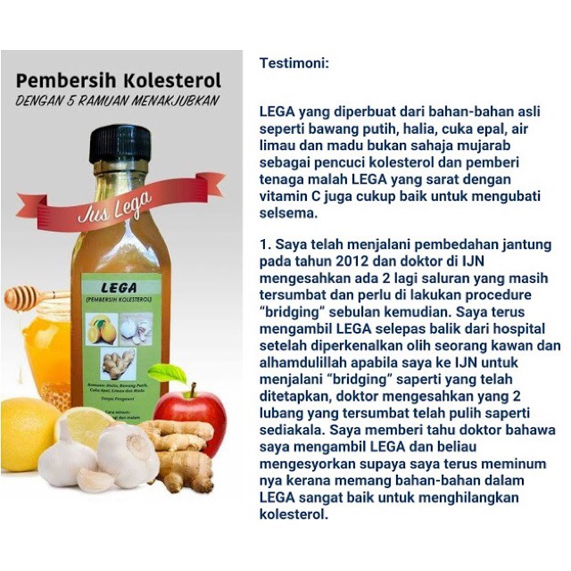 Jus Lega Pembersih Kolesterol Jus Lega from juslega.weebly.com Timun buah atau sayur 20 manfaat timun yang terbaik dr jus mentimun obat alami untuk menurunkan tekanan darah. Dihasilkan 100% ramuan asli (bawang putih, halia, madu bakal haji n hajjah yang perlukan sokongan tenaga, boleh amalkan jus lega ni. Sampel ini saya perolehi tidak lain dan tidak bukan dari ayah. Inilah jus lega dapatkan sebelum terlambat. This opens in a new window. Jump to navigation jump to search. ✔ menurunkan kadar kolesterol dalam darah. Jus lega membantu yang selalu merasai kesempitan dada bila bernafas dan risau tentang masalah sakit jantung untuk merasai kelegaan dan sihat.