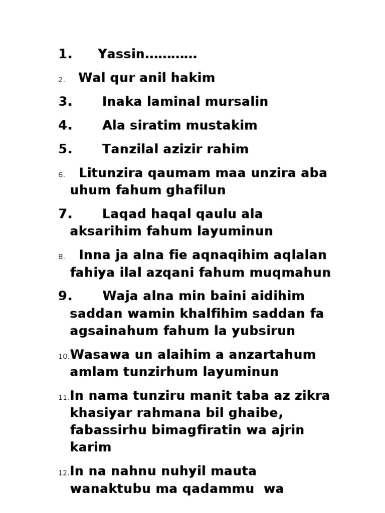 Say waja'alna min baini aidihim saddan wamin khalfihim saddan faaghsyaina hum fahum laa yubsiruun (surah yaseen, 36:9) kaaf haa yaa 'ain saad (19:1) ha meem 'ain seen qaaf (42:1, 2) la yusadda'una 'anna wa la yunzifoon (56:19) ya rabbu a rabbu ya rabb: Klinik pakar kulit kelantan : Wa sawa'un alaihim a anzartahum am lam tunzirhum la yu'minin 11. Wa ja'alnā mim baini aidīhim saddaw wa min khalfihim saddan fa agsyaināhum fa hum lā yubṣirụn. Quotes ulang tahun sendiri islam quotes ulang tahun sendiri di 2020 ulang tahun kartu ulang tahun kata kata mutiara Namun mungkin dari tatalku dalam mempenalajrinya agak berbeda. Klinik pakar kulit kelantan : And we have set a bar b4 them and a bar behind them, and (thus) have covered them so that they see not. Berikut adalah khasiat surah yasin ayat 9 yang bisa digunakan untuk memproteksi dari berbagai kejahatan. Corpus spongiosum erectile tissue / hubs week 11 p. Membuat mereka cinta kepada dunia (wa min kholfihim), dari kanan: Wa ja'alna min baini aidihim saddaw wa min khalfihim saddan fa agsainahum fahum la yubsiruun 10. Khasiat surah yasin ayat 9.